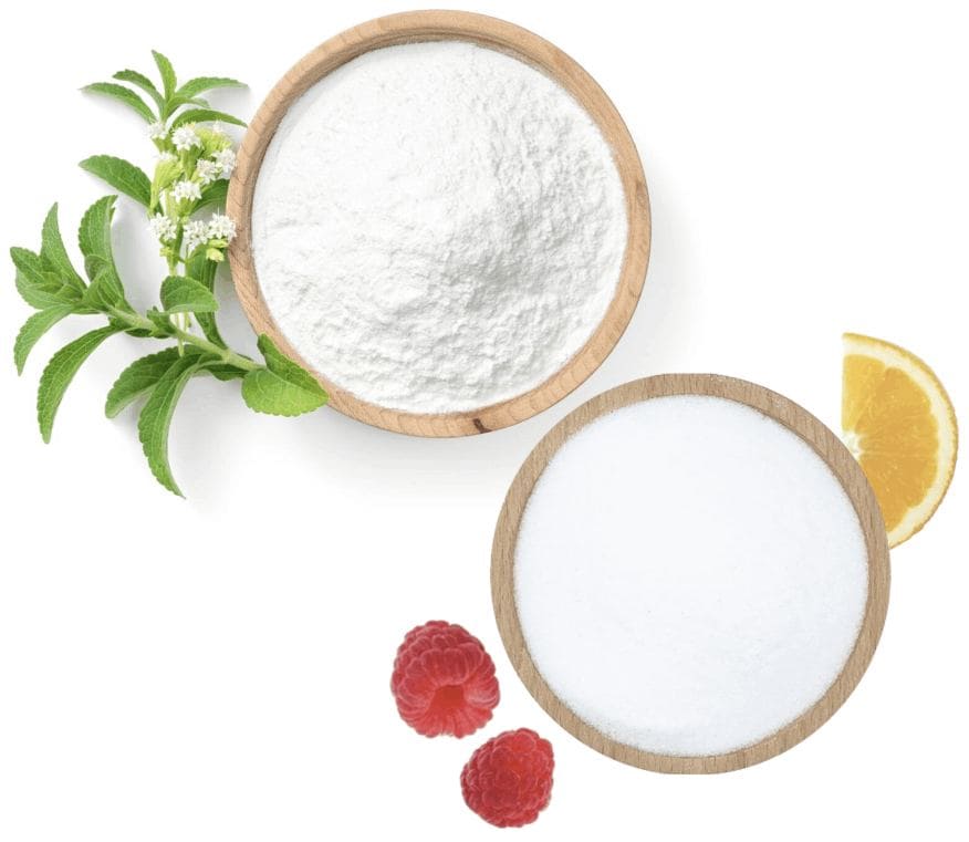 Contained in algae and fruit. Suitable for health-conscious individuals and those watching their weight and blood sugar. Erythrol's sweetness is akin to sugar (makes up to 60-70% of sugar's sweetness).